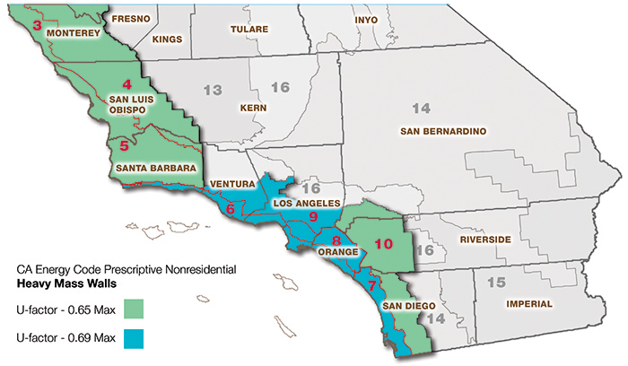 Figure 1 – Southern California Climate Zones with Concrete Masonry Heavy Mass Wall Overlay