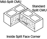 With just half the face in a split texture, Mid-Split CMU provide design effects without projections, or have a practical function of breaking split fields to precision, without having to cold-joint the wall itself.