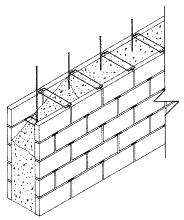 Composite, multiwythe grouted masonry is a versatile solution for a variety of construction situations. Variable wall widths from 8 inches to 24 inches, or more, in 1 inch increments, are facilitated by the length of wall tie used. Note that for normal design conditions, standard types of hollow load-bearing cmu are best for wall construction up through 16 inch widths. For wall widths over 16 inches or for certain design considerations, composite masonry should be considered.