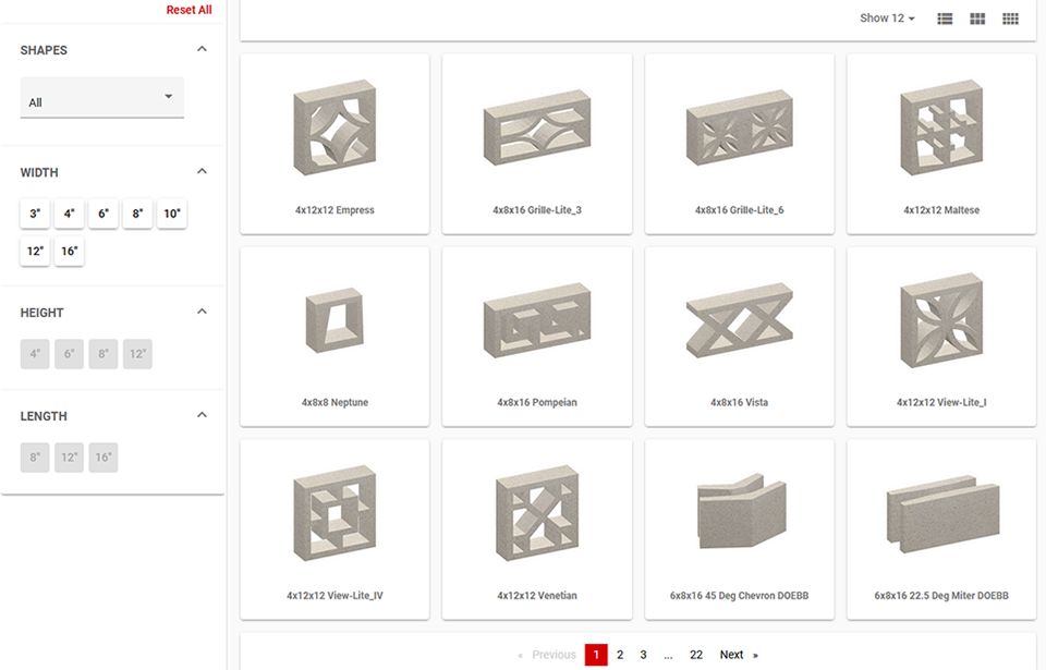 Angelus produces hundreds of block sizes and configurations for architectural and structural purposes. Factor in combinations of units, colors, and textures, and thousands are possible. The Angelus Block 3D Unit Library is a web-based application that greatly simplifies finding a model by generating individual cmu based on simple user selections.