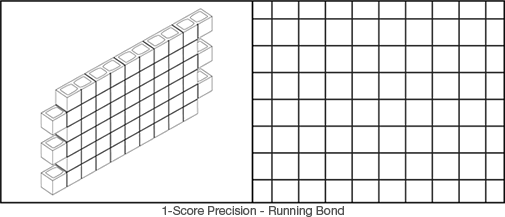 A single vertical score mid-length, 3/8-in wide and deep, simulates a raked joint. For typical cmu with an 8-in by 16-in face, the effect is a grid of 8×8 squares that can effectively add accent or interest to the elevation.