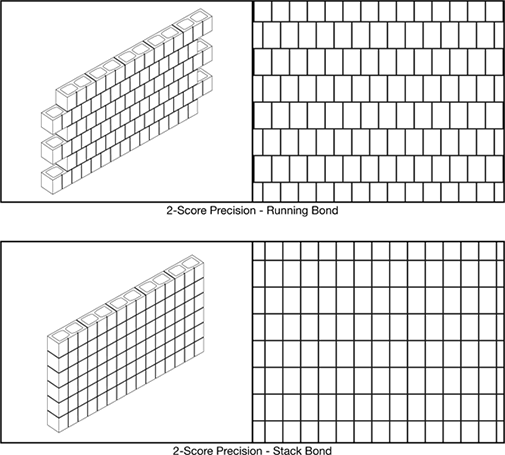 Two vertical scores, 3/8-in wide and deep, simulate raked joints, and visually divide the face into three sections. The effect is a grid that can effectively add accent or interest to the elevation.