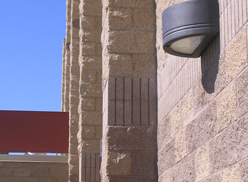 Five vertical scores, 3/8-in wide and deep, simulating raked joints. The effect is a grid that can effectively add accent or interest to the elevation.