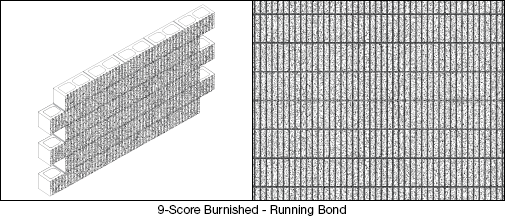 Nine vertical scores, 3/8-in wide and deep, simulating raked joints. The effect is a tight grid that can effectively add accent or interest to the elevation.