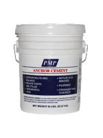 PMP Anchor Cement is a preblended, non-shrink, hydraulic cement which expands as it sets, locking itself in place. It sets hard in 15-30 minutes and is stronger than concrete in 24 hours. Controlling the amount of water allows the product to be either poured or packed. PMP Anchor Cement dries to a natural grey concrete color.