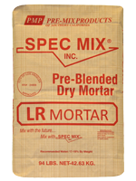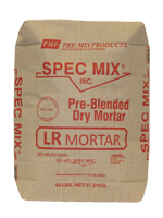 SPEC MIX LR Mortar is a dry factory blended lime replacement mortar mix formulated for superior bond, water retention, board life and efflorescence protection. Available in Type S or M.