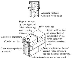 Copings, Parapets, and Tops of Walls. Masonry parapets require special attention during design and construction since they will be exposed to weather on both faces as well as on their tops.