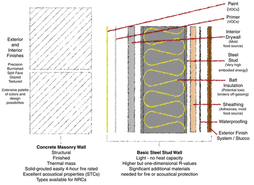 Concrete masonry vs. steel stud systems: