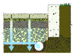 • Maximize buildable area by incorporating stormwater detention facility under permeable pavement in parking areas.