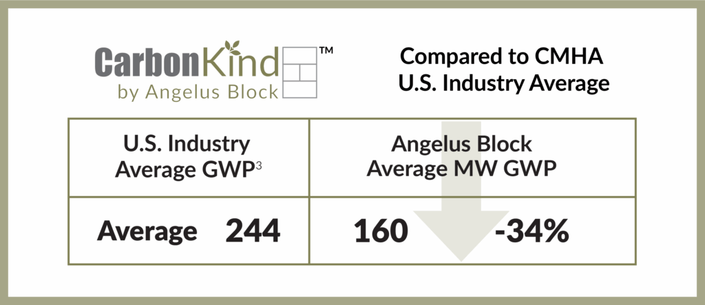 Once again, Angelus’ CarbonKind CMU are significantly lower in GWP—by 34%—when compared with the U.S. industry average.