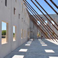 The significant decrease in cement afforded by concrete masonry cuts 132 tons of cement. That equates to 165 tons LESS CO2 than tilt-up, or 2.6 pounds less CO2 per square foot of wall area.2